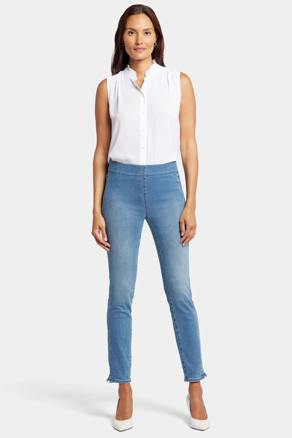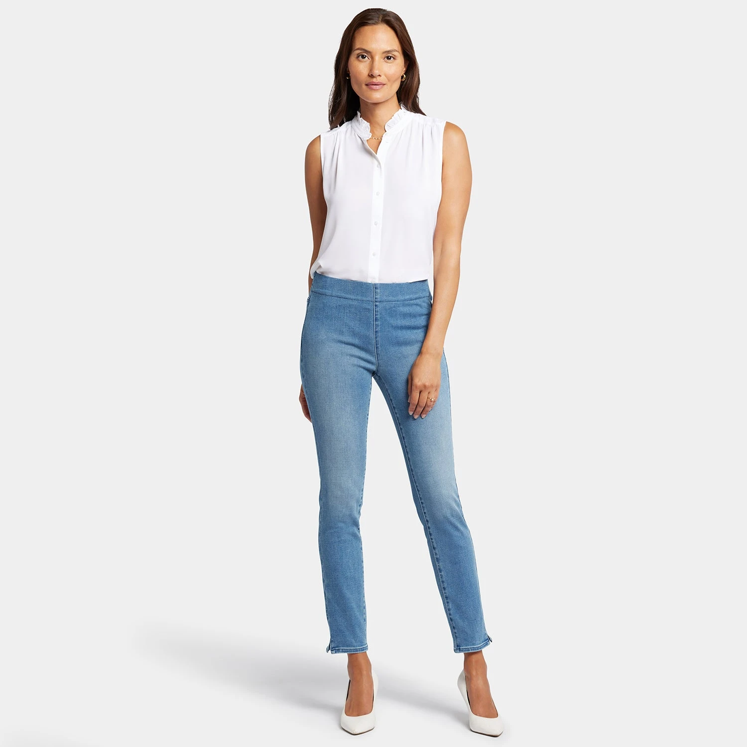 NYDJ’s Skinny Ankle Pull-On Jeans are a style no-brainer you’ll reach for again and again. Our revolutionary fit gives you a classic silhouette that’s always in style. Like all NYDJ jeans, this style uses Lift Tuck® Technology. The proprietary slimming panel with a patented criss-cross design trims for a smooth, slender silhouette that enhances any look. Features side slits and a pull-on waistband for ease of wear. This jean is made with earth-friendly methods that result in reduced consumption of water, chemicals and/or energy.