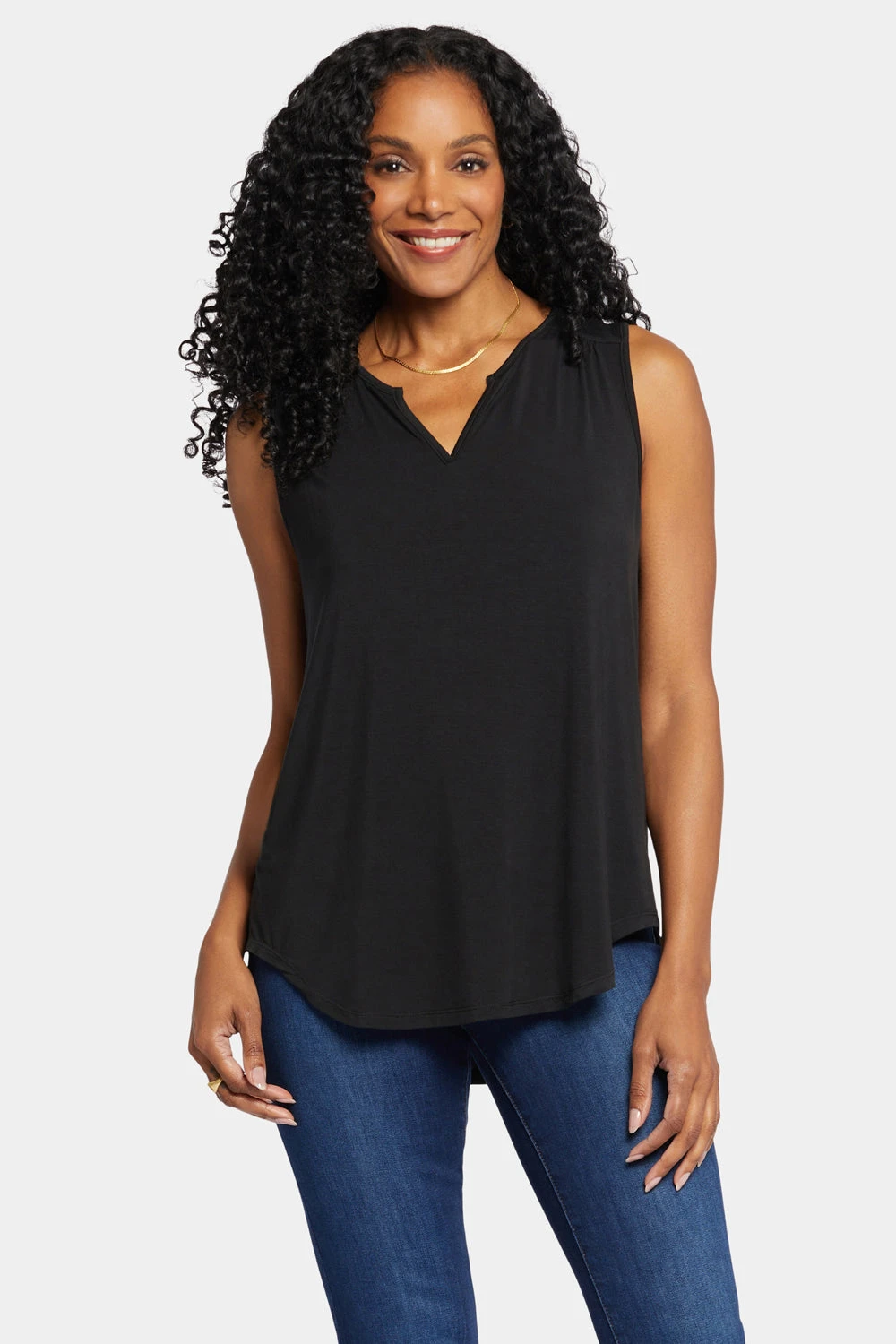 Like our classic Perfect Tee, the NYDJ Sleeveless Perfect Tee truly is a perfect everyday essential. Boho-inspired with a tunic neckline, this wear-with-anything top is softened with pintucks at the shoulder, a shaped hemline and a relaxed fit. It’s ideal for warmer weather as well as layering.