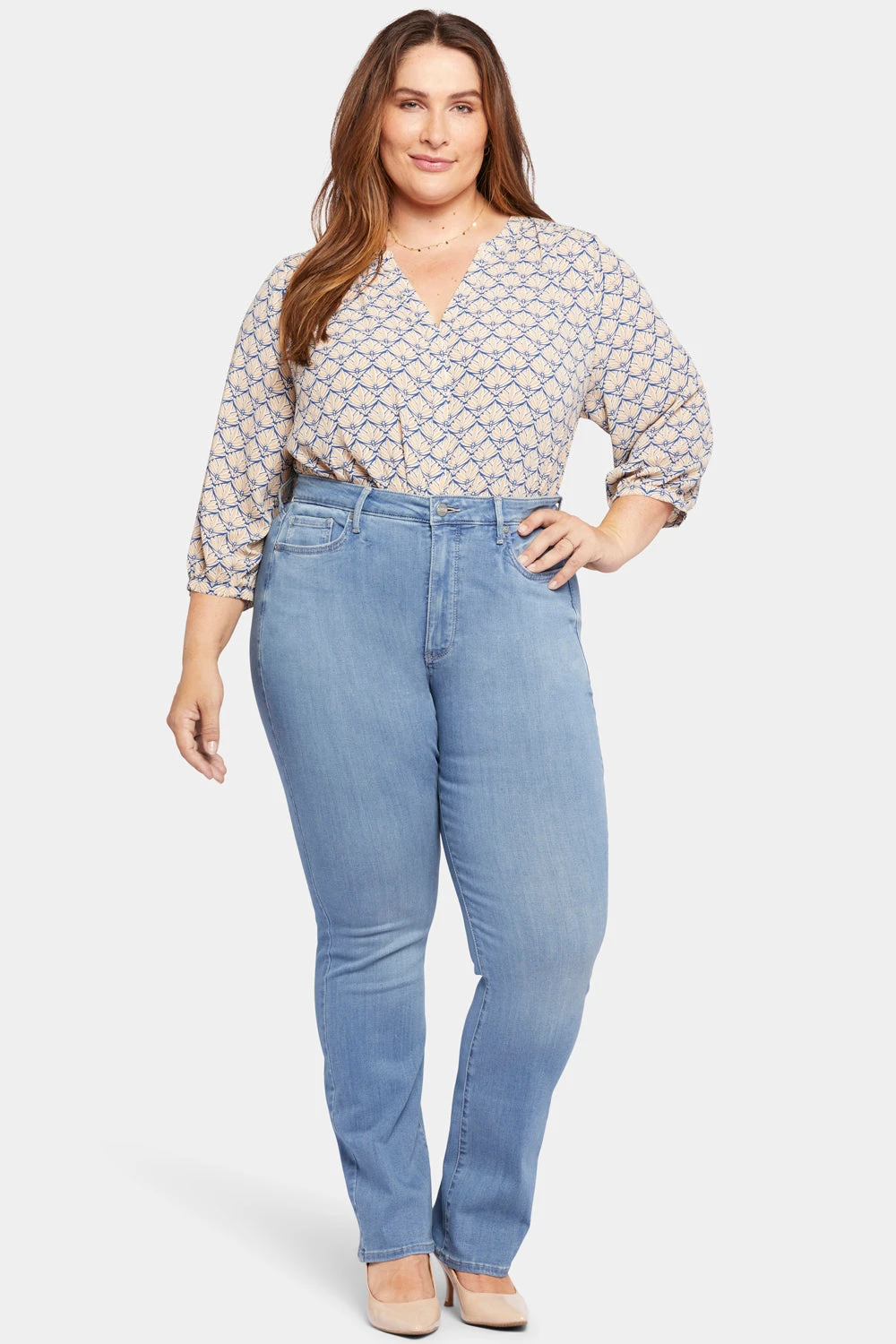 There’s nothing better than a bootcut jean—and NYDJ’s Slim Bootcut Jeans in Plus Size are the new fit you’ve been wanting. Our new sleek, slimming jeans feature a narrower fit from the hip through the knee, with an exaggerated bootcut flare at the hem. These jeans are also made with Sure Stretch® denim technology to give you full range of movement and serious comfort. Our Lift Tuck® Technology uses a proprietary slimming panel with a patented criss-cross design to shape and support your curves for an always-sleek silhouette. Blue Moon is a lively, rich medium-dark indigo wash with soft whiskering on the front hips and subtle fading on the front thighs, knees and seat that bring out its classic character. Lovesick is a lighter wash with tucks at the waist and pocket scoops, whiskering on the front hips and fading on the front thighs, knees and seat to enhance its vintage character. Finished with a zip and button fly and classic five-pocket styling.