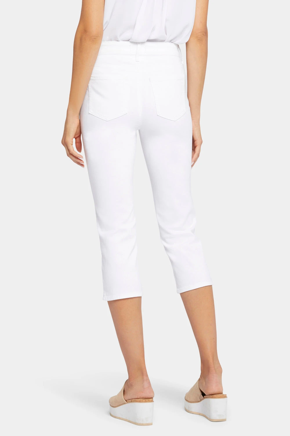 Flawless styling and figure-flattering construction give both style and substance to NYDJ’s Slim Straight Crop Jeans in Curves 360 Denim. The cropped silhouette is perfect for all your warm-weather adventures. A soft, mesh compression interior front panel comfortably holds you in while moving with you throughout the day. Finished with classic five-pocket styling, slits at the hem, zip fly and button closure.Â