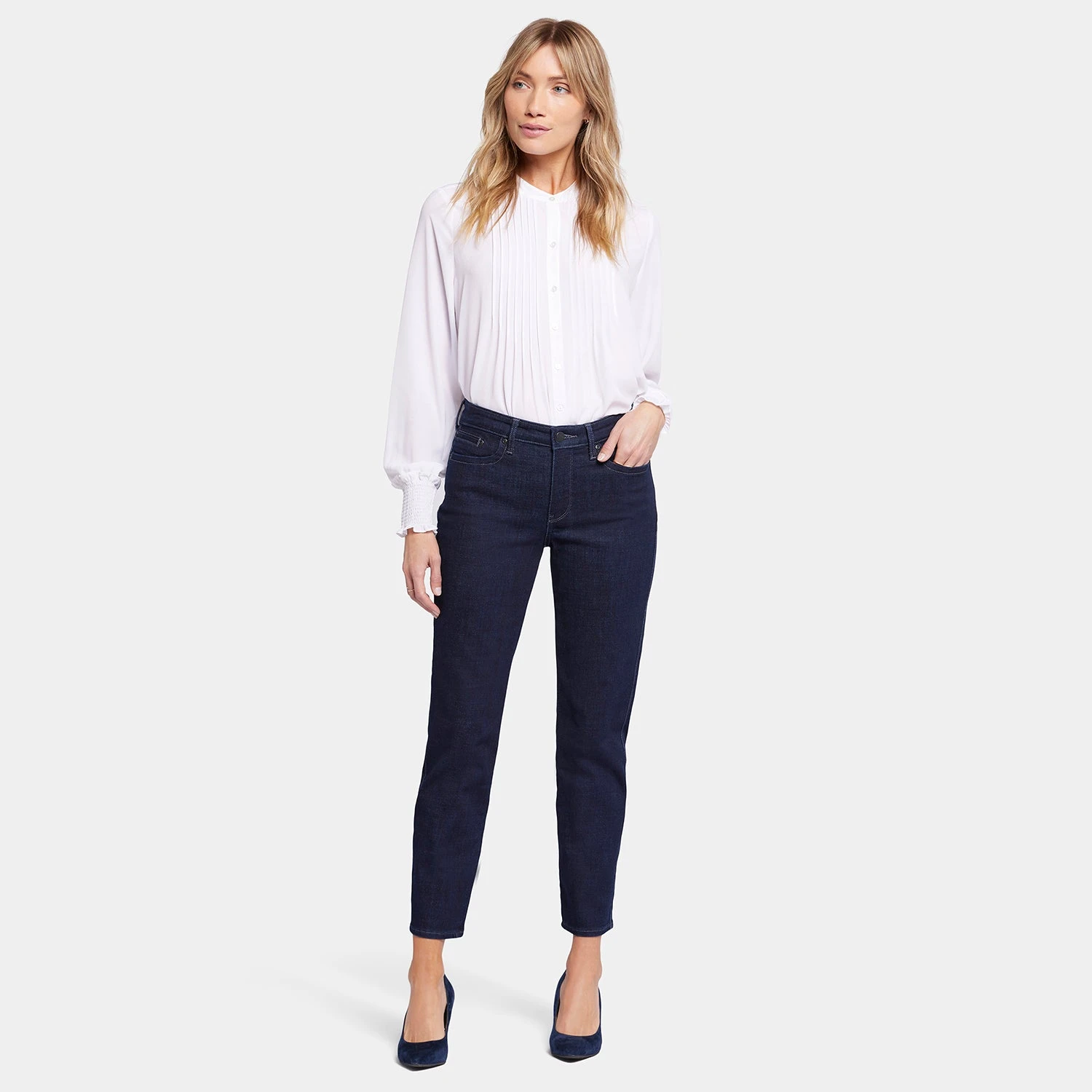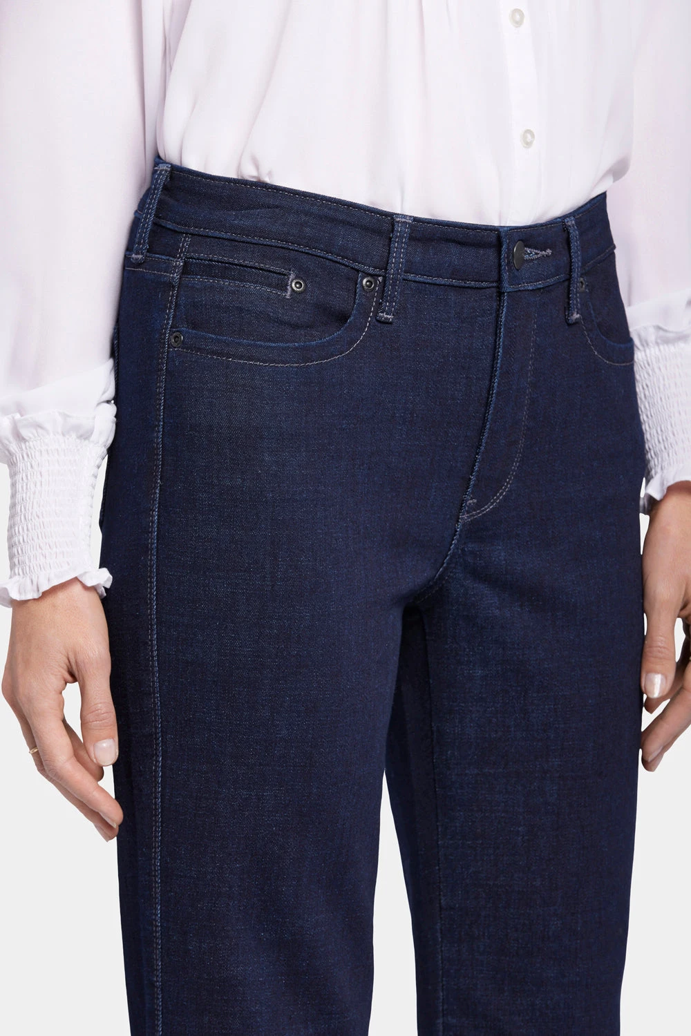 The Stella Tapered Ankle Jeans by NYDJ are a cool new style that’s both flattering and on trend. This slimming pair sits right at the natural waist and has an ankle-length tapered fit. Our Lift Tuck® Technology uses a proprietary slimming panel with a patented criss-cross design to shape and support your curves for an always-sleek silhouette. Finished with a zip and button fly and classic five-pocket styling. Playlist is a medium-indigo wash with a pale-yellow vintage tint, light whiskering on the front hips and subtle fading on the front thighs, knees and seat. Rendezvous is a medium wash with a vintage appearance, featuring soft whiskers on the front hips and subtle fading on the front thighs, knees and seat. This jean is made with earth-friendly methods that result in reduced consumption of water, chemicals and/or energy.