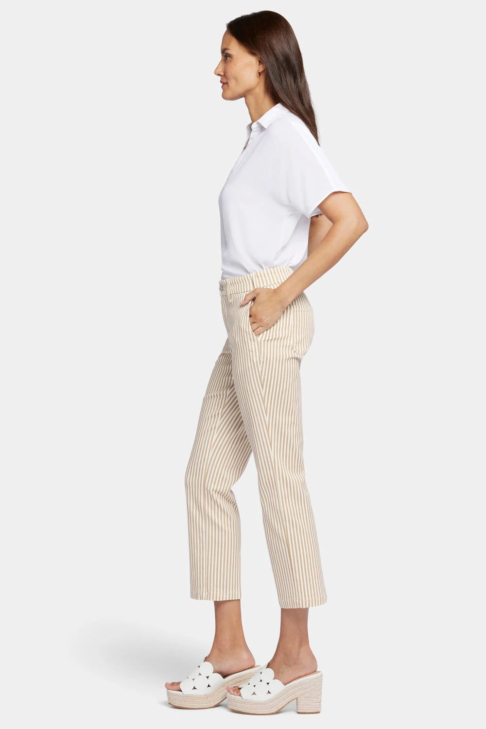 Classic and versatile, NYDJ’s Straight Ankle Pants in Stretch Twill are sure to become a favorite. These pants feature front and back creases with a slimming, straight-leg fit. Finished with front slash pockets, back patch pockets and a zip fly with button closure. This pant is made with earth-friendly methods that result in reduced consumption of water, chemicals and/or energy.