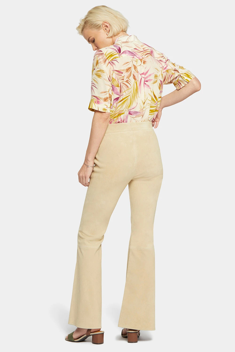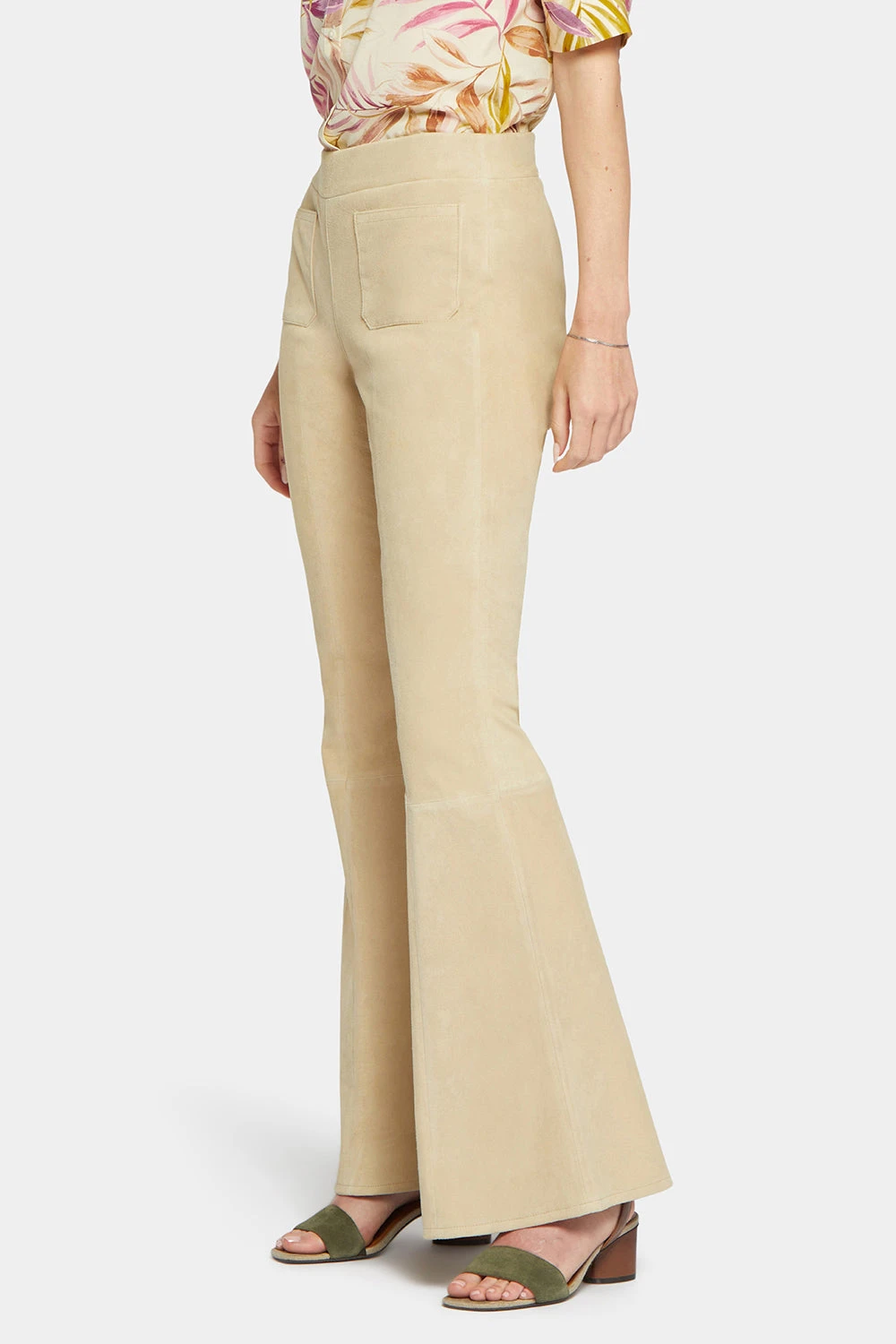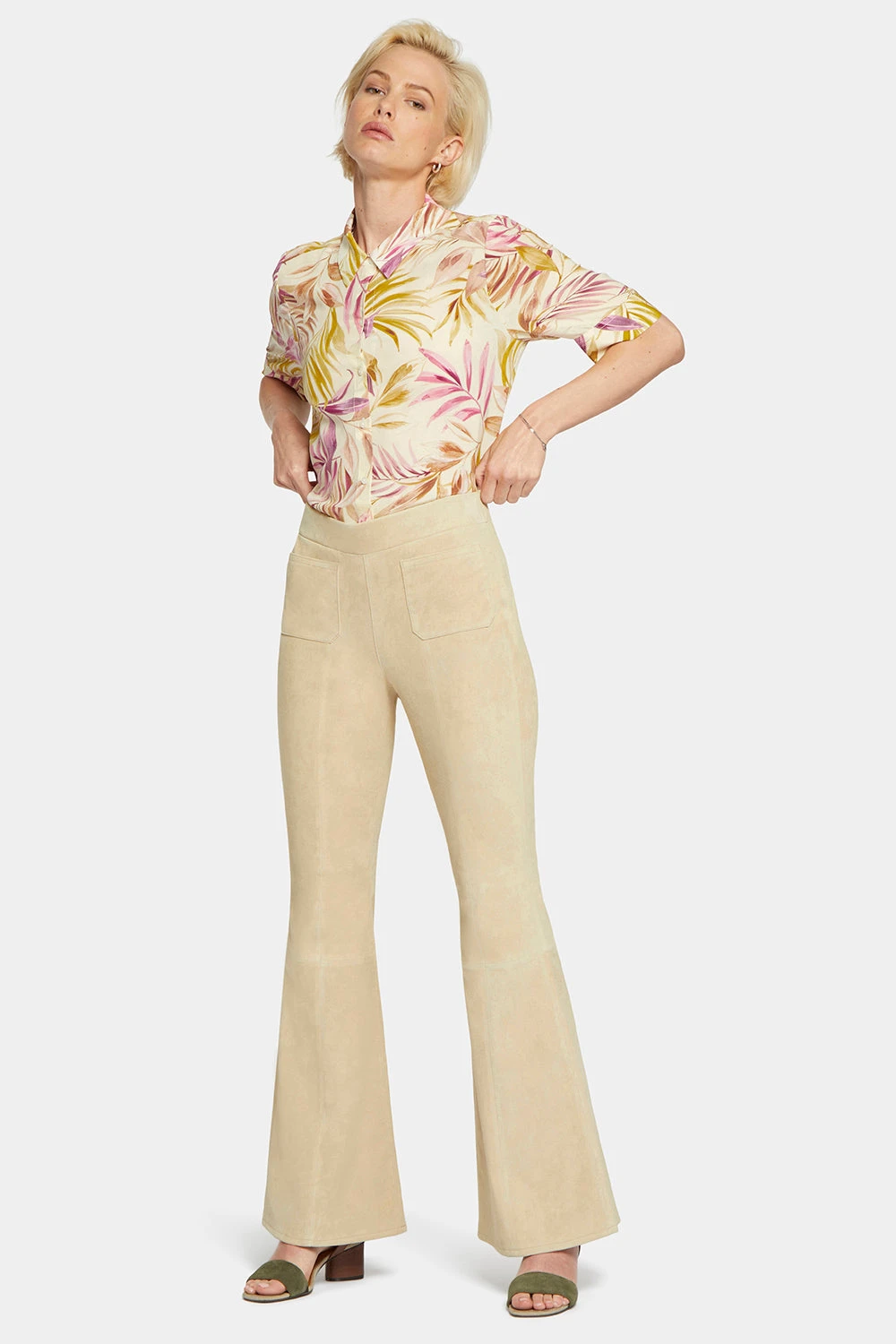 Crafted from supple stretch suede in a vintage-inspired silhouette, NYDJ’s Stretch Suede Flared Pants are both comfortable and statement making. With patch pockets in front and a smooth pocketless seat, they’re just a bit provocative, and the maxi-flared leg gives them a dramatic shape that’s emphasized by horizontal seaming above each knee. The styling is finished with a pull-on waistband for even more sleekness and ease of wear. These pants are part of the STATEMENT NYDJâ„¢ collection, featuring bold fashion-forward styles in premium fabrications. Please reference the size guide for appropriate sizing.