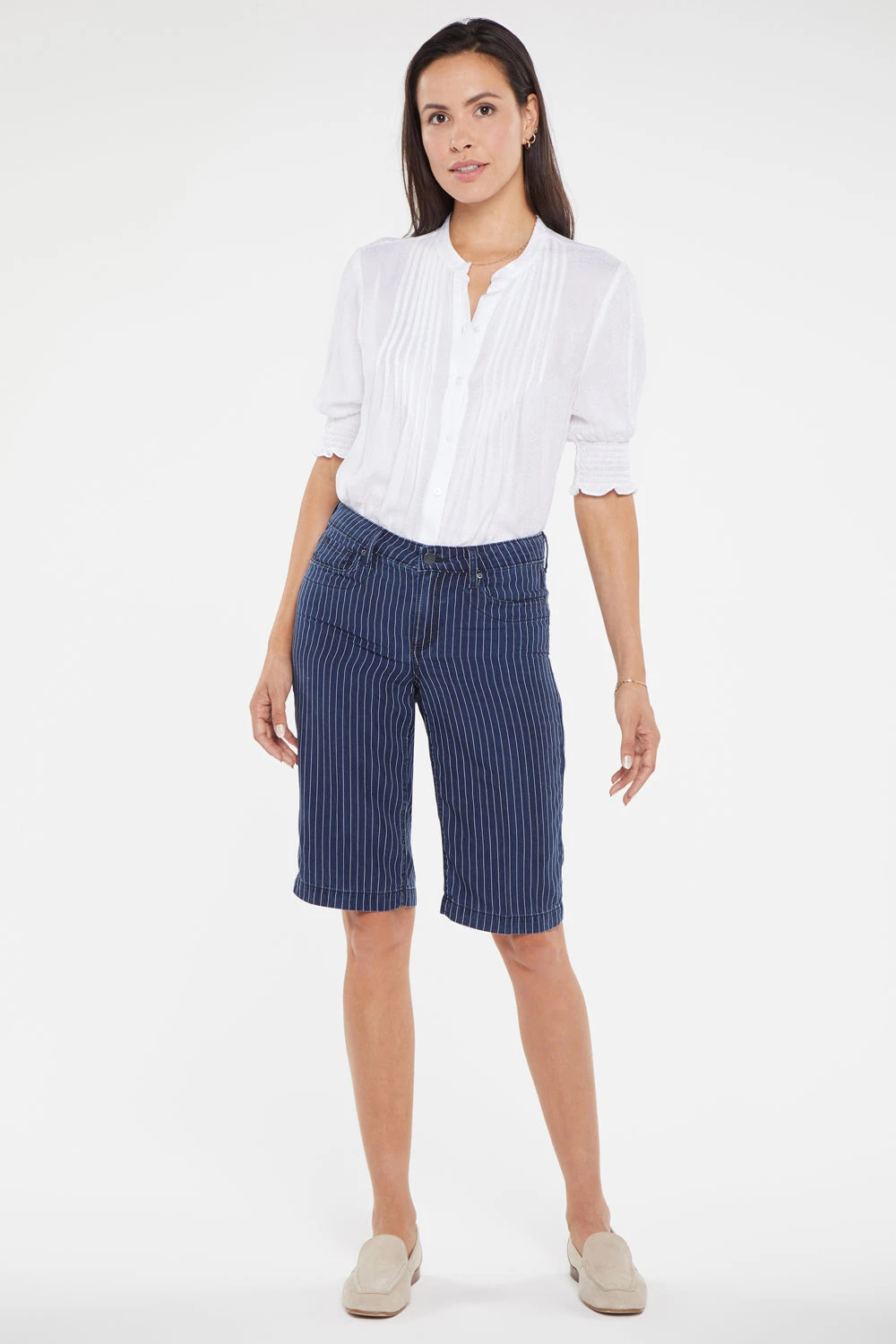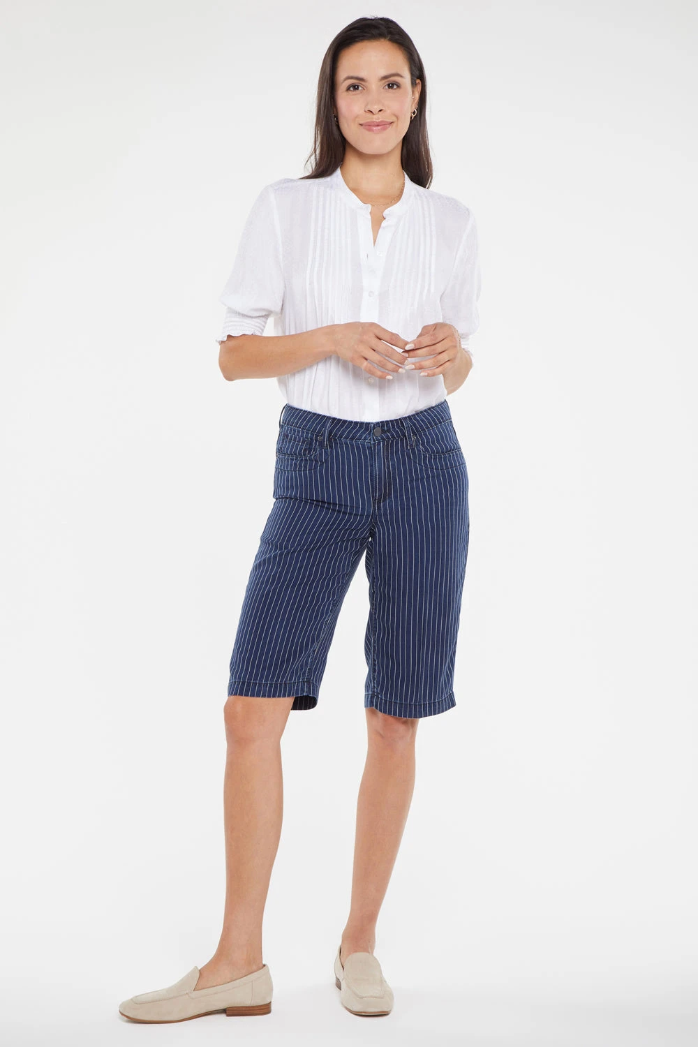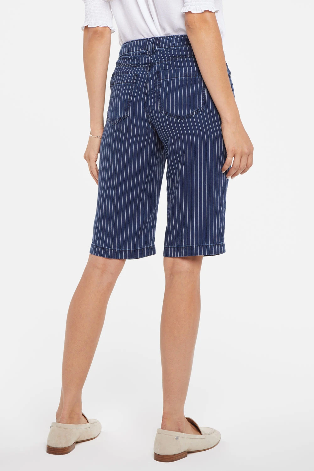 Elevate your warm-weather look with the Tailored Bermuda Shorts in Petite by NYDJ. These lightweight shorts in soft and cool premium lyocell feature a slim leg opening, trouser folds and a deep hem with topstitching to give them polished sophistication. Our signature Lift Tuck® Technology slims in front and contours in back for a flattering fit. Finished with five-pocket styling and a zip fly with button closure.