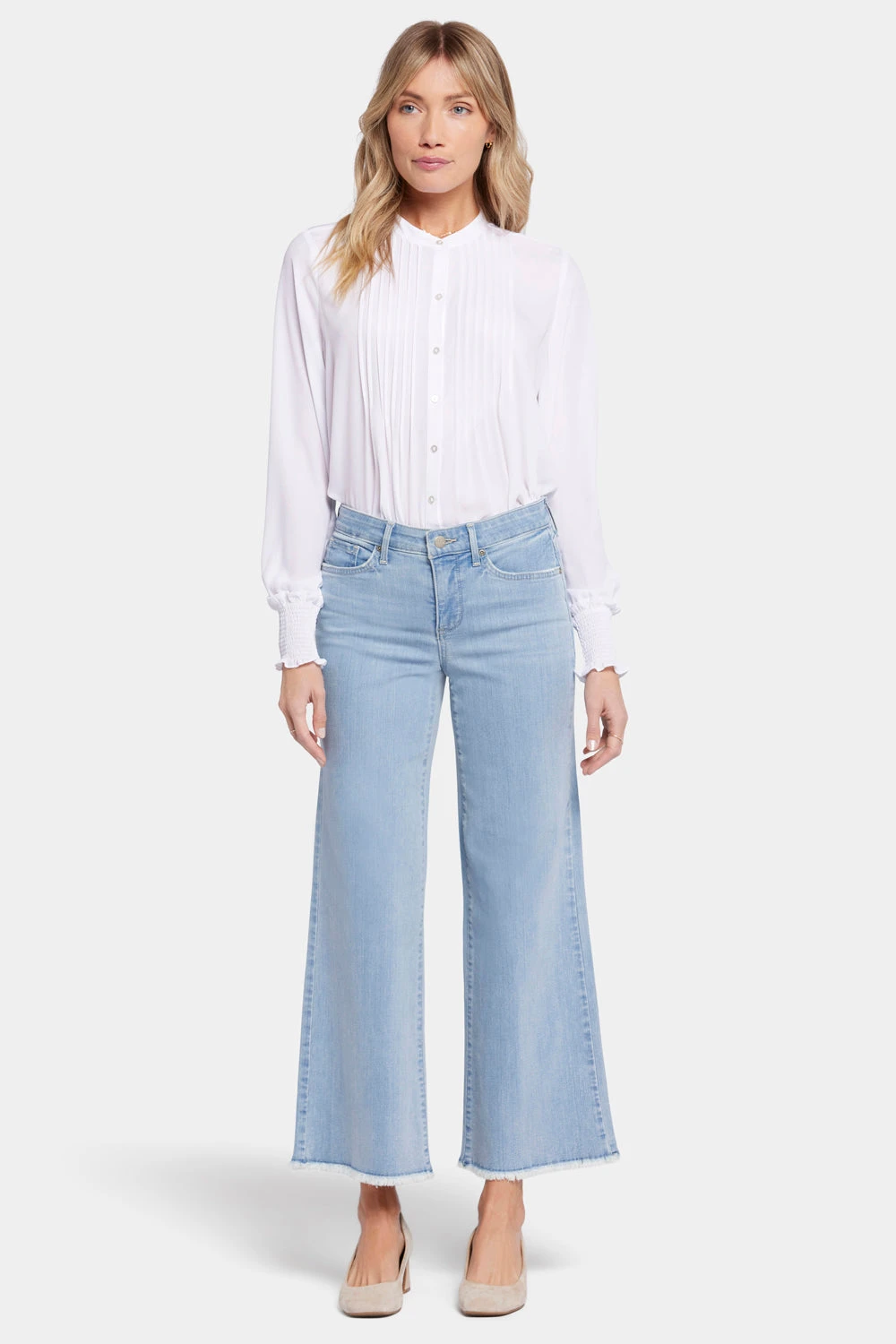 One way to stand out is to rock a bold, trendsetting pair of jeans. The Teresa Wide Leg Ankle Jeans with Frayed Hems by NYDJ don’t just stand out—they steal the show. Our Lift Tuck® Technology is made to help you keep your shape, with a proprietary slimming panel with a patented criss-cross design that smooths and sculpts. These chic jeans feature a wide leg, classic five-pocket styling, a zip fly with button closure and frayed hems. This jean is made with earth-friendly methods that result in reduced consumption of water, chemicals and/or energy.