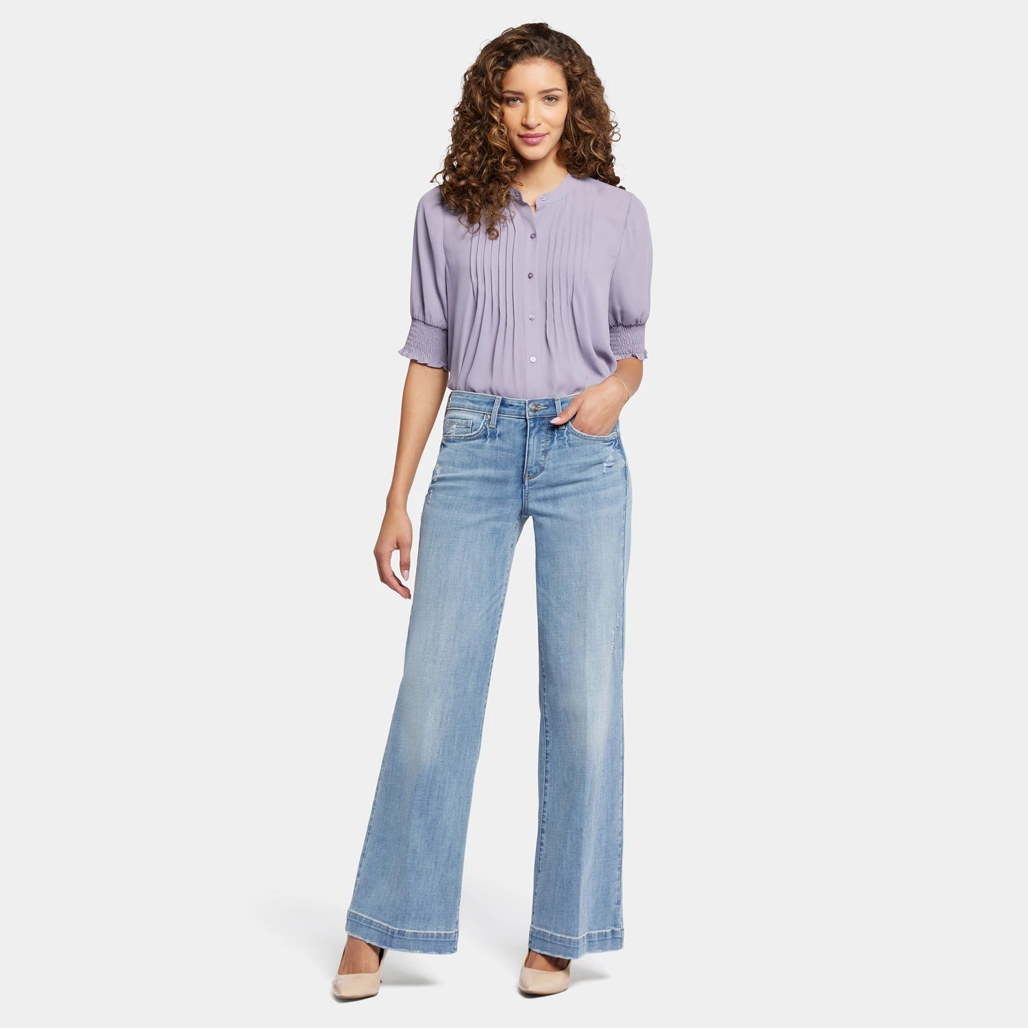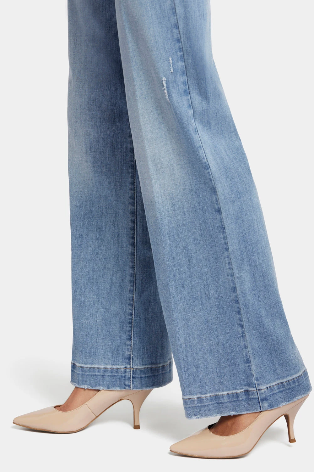 The Teresa Wide Leg Jeans with 1 1/2″ Hems by NYDJ don’t just stand out—they steal the show. Their wide legs add instant polish to everything you pair them with. Our Lift Tuck® Technology is made to help you keep your shape, with a proprietary slimming panel with a patented criss-cross design that smooths and sculpts. Features five-pocket styling and a zip fly with button closure. This jean is made with earth-friendly methods that result in reduced consumption of water, chemicals and/or energy.