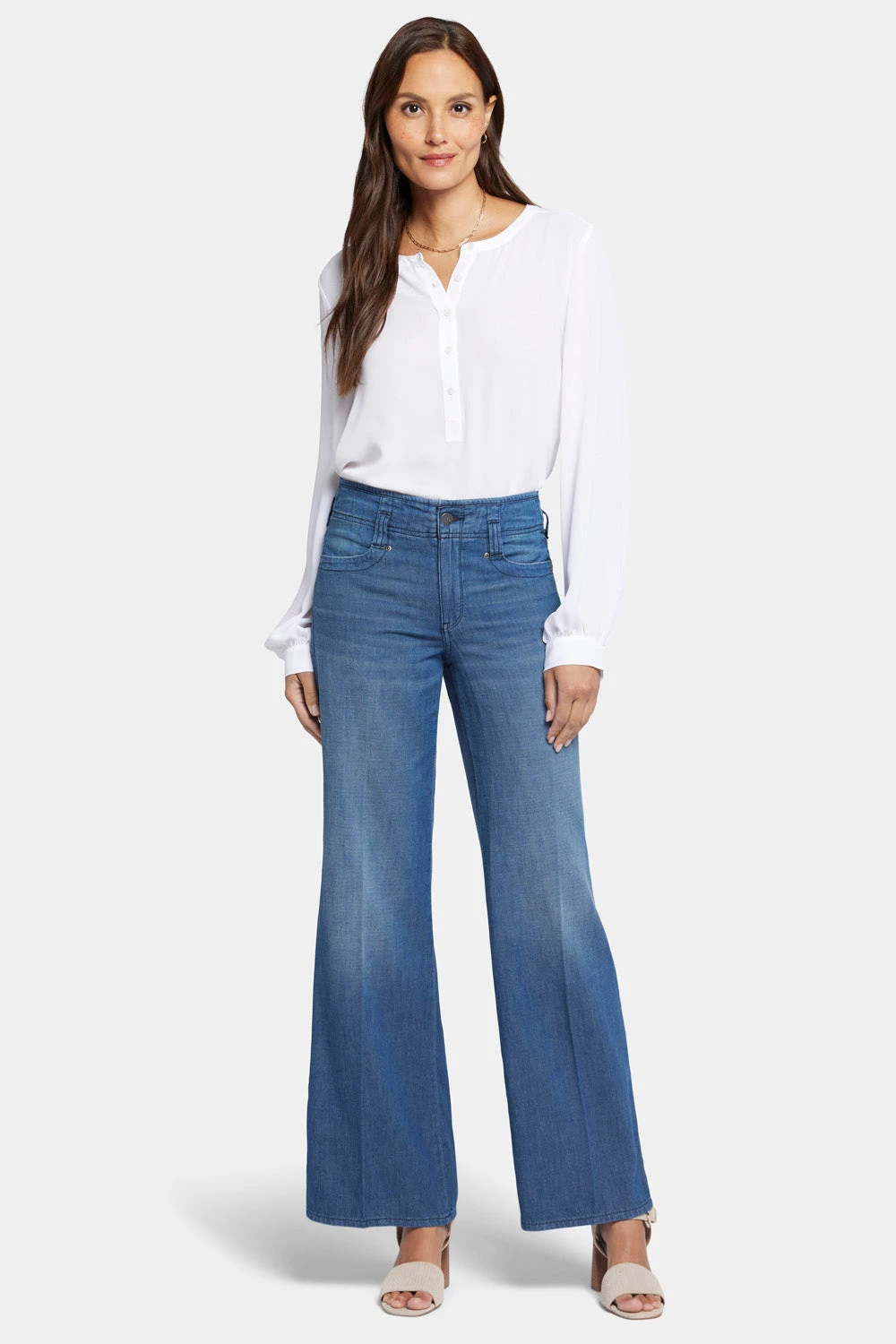 One way to stand out is to rock a bold, trendsetting pair of jeans. The Teresa Wide Leg Jeans with High Rise by NYDJ don’t just stand out—they steal the show. Our Lift Tuck® Technology is made to help you keep your shape, with a proprietary slimming panel with a patented criss-cross design that smooths and sculpts. Featuring an even higher rise than our regular Teresa Wide Leg Jeans, this style has a fabulous vintage look. Soft lightweight denim provides a comfortable, breezy feel. Finished with four-pocket styling and a zip fly with button closure.