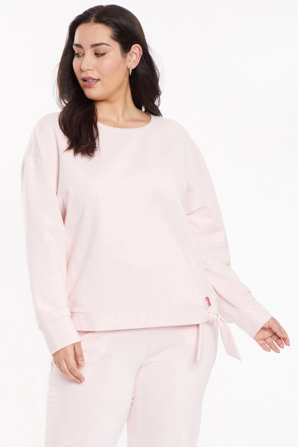 Tie Front Sweatshirt In Plus Size – Carnation