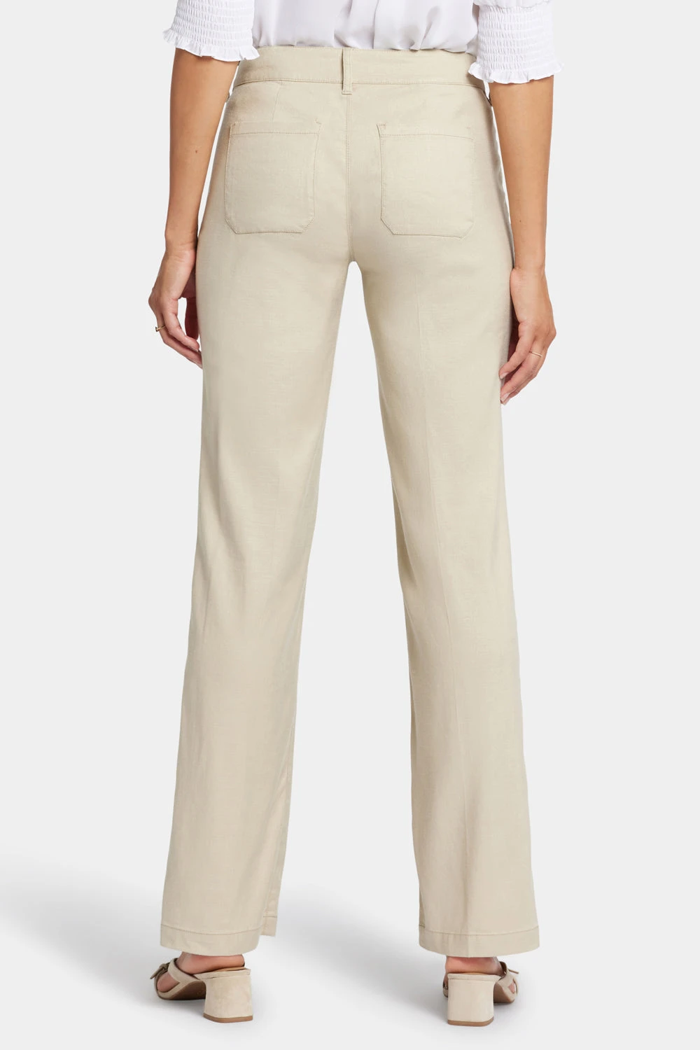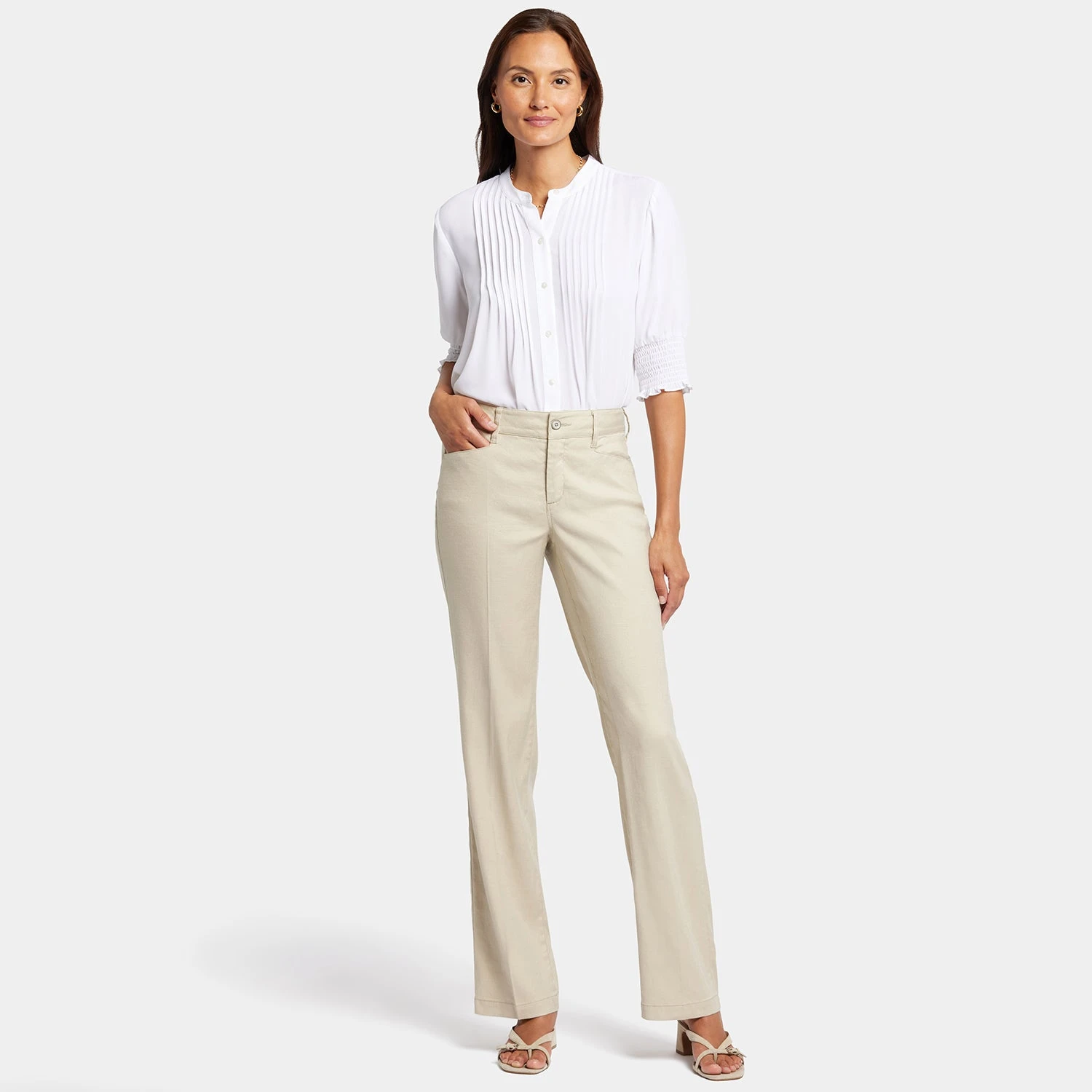 Warmer weather calls for a relaxed attitude and style to match. This season, NYDJ’s Trouser Pants in Stretch Linen fit the bill. Easy, wide-leg styling makes them effortless to dress up or dress down. Just throw on your heels or some well-worn sandals, and you’re ready to go. Even better, NYDJ’s signature Lift Tuck® Technology provides just the right amount of support for a smooth, flawless figure—all thanks to an innovative, proprietary slimming panel with a patented criss-cross design. Features classic four-pocket styling, zip fly and button closure.