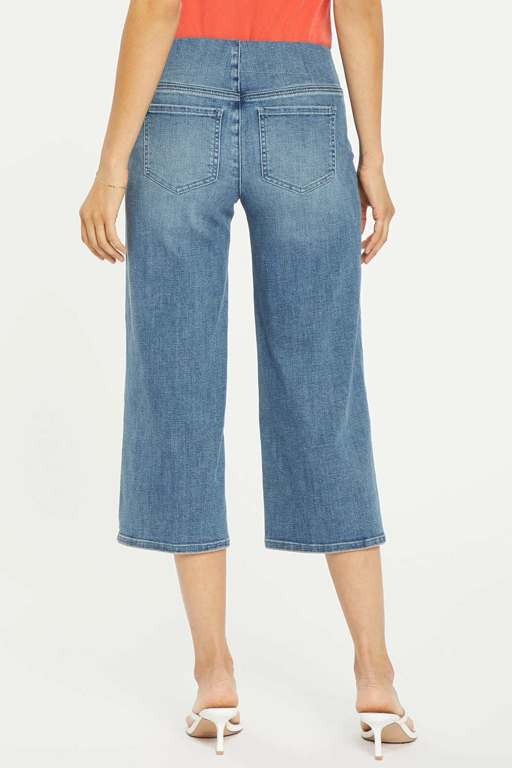 These jeans are every bit as comfortable as they are chic and flattering. The Wide Leg Capri Pull-On Jeans by NYDJ strike the perfect balance between laid back and trendsetting, with an of-the-moment wide cropped leg. Like all NYDJ jeans, this style uses Lift Tuck® Technology. The proprietary slimming panel with a patented criss-cross design trims for a smooth, slender silhouette that enhances any look. Features back pockets and a pull-on waistband for ease of wear.Â